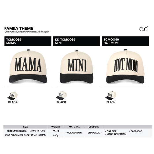 MAMA Embroidered Snapback Trucker Hat: Black