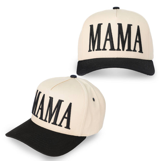 MAMA Embroidered Snapback Trucker Hat: Beige