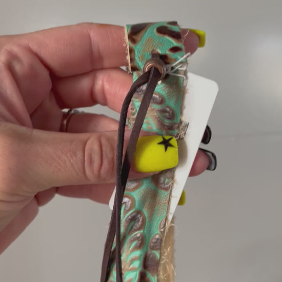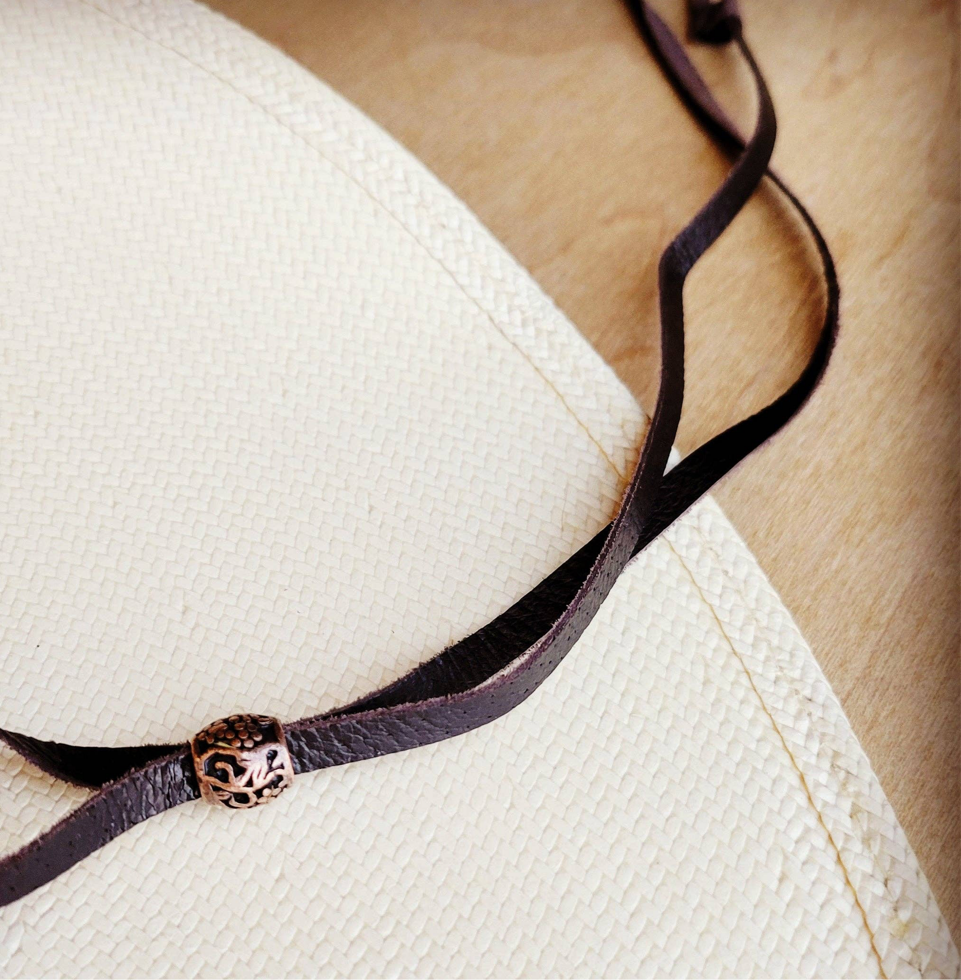 *Boho-style genuine leather Hat Band *1 inch wide *Adjustable with leather ties *Embossed hide or Hair-on-Hide as indicated in the listing title *Sourced and Hand-made in Texas