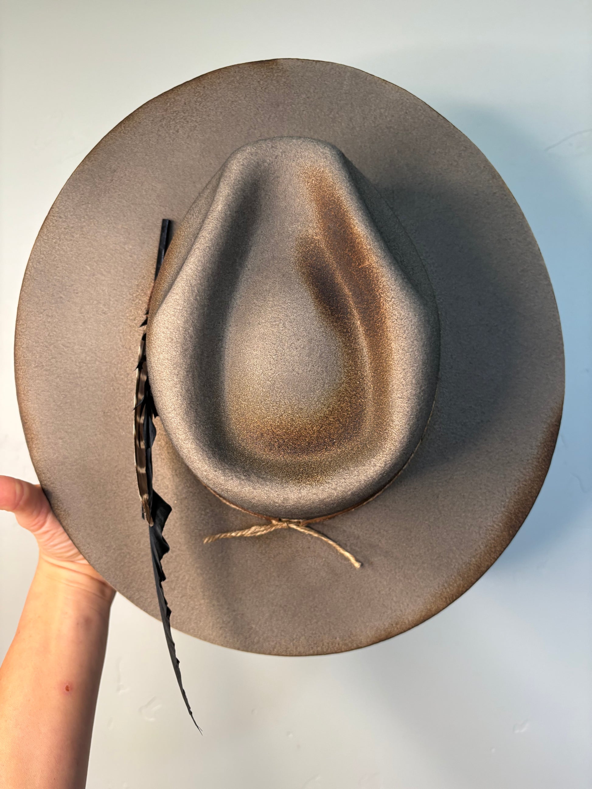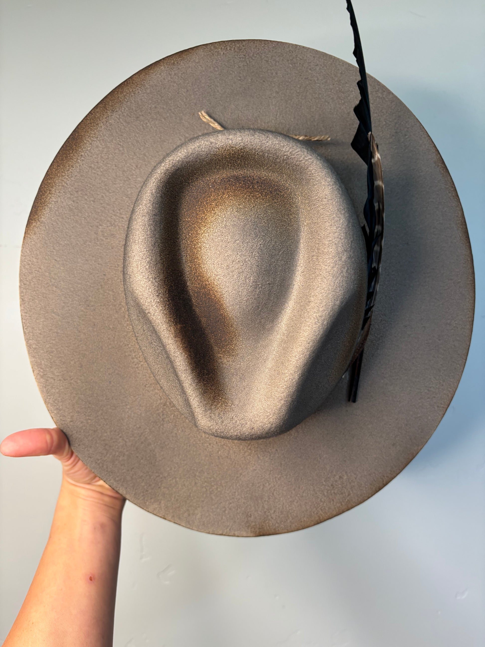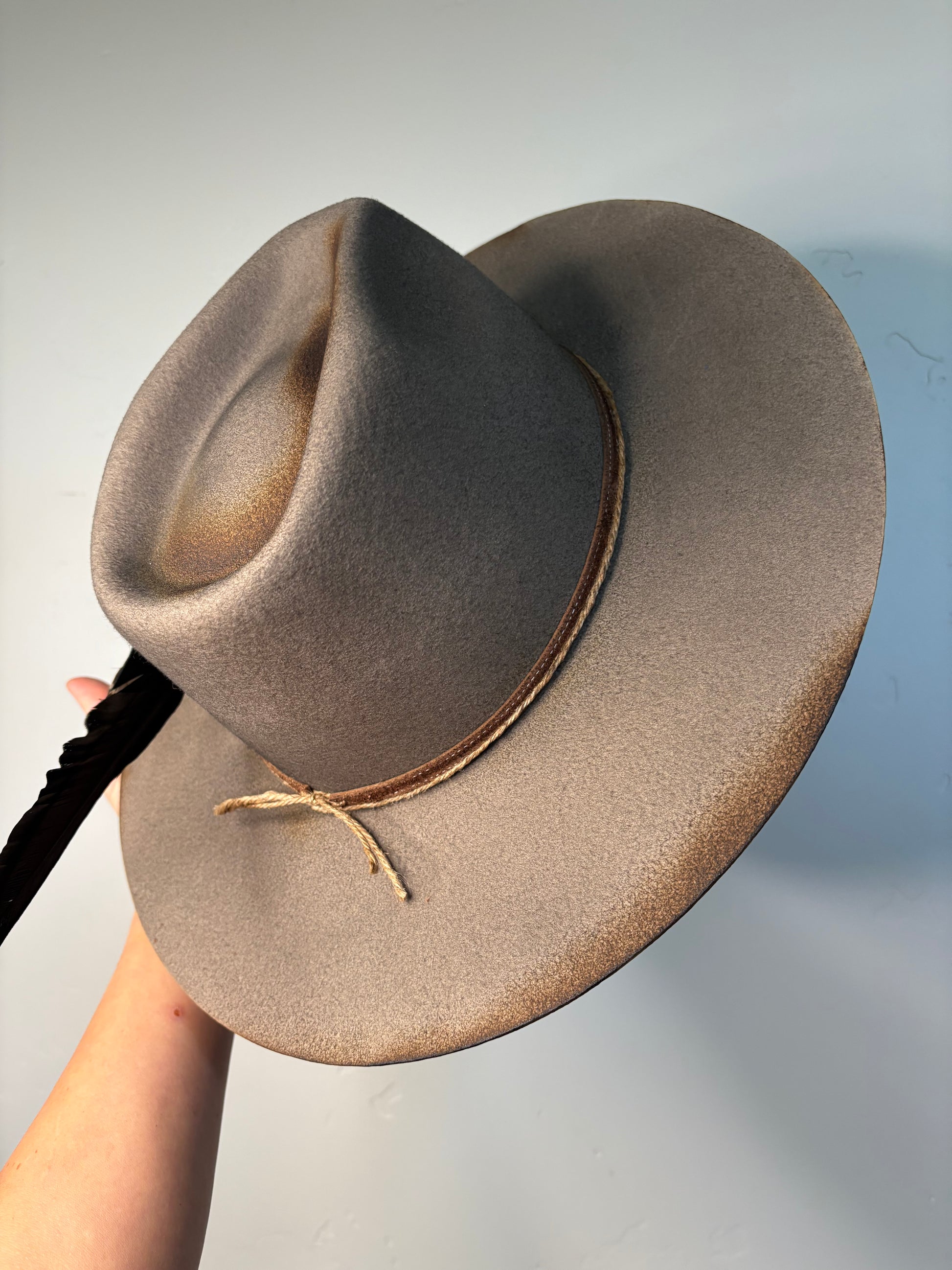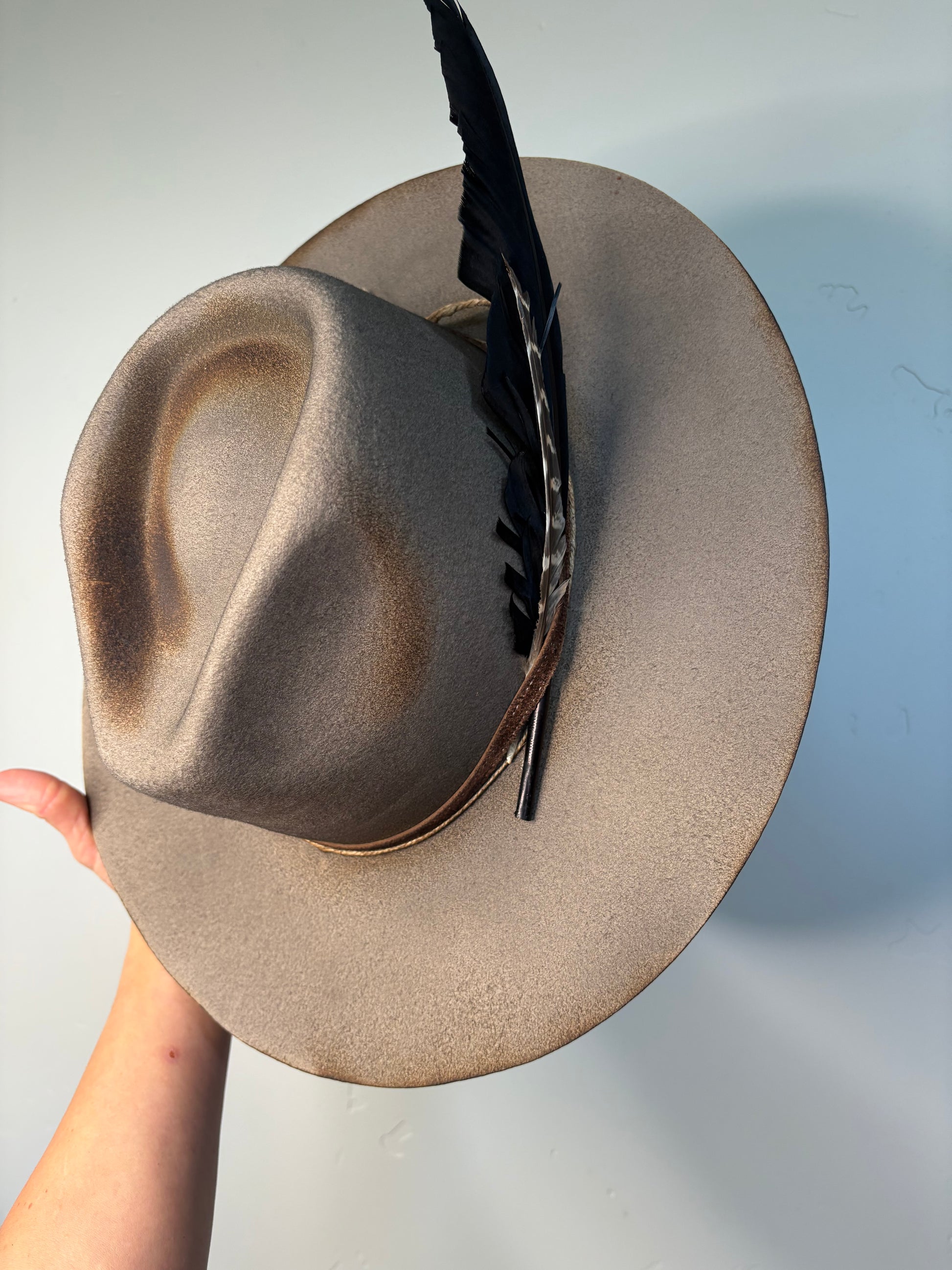 Indulge in the sophisticated style of The Frontier, a mushroom colored wool fedora that exudes elegance. The simple yet chic band is accented with a statement feather bundle, adding a touch of uniqueness. With adjustable sizing, this unisex fedora is perfect for anyone looking for a stylish and versatile accessory.